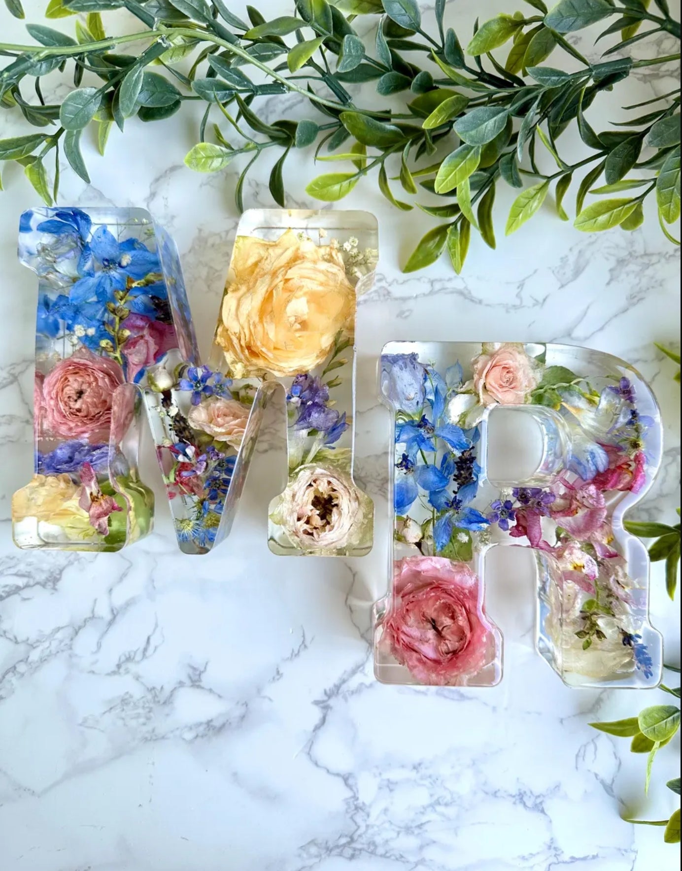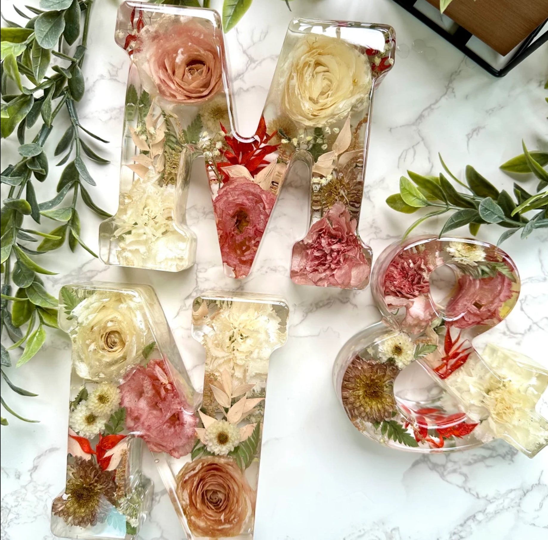 For items made of resin: examples pictured on the listing photos are made from other customers' flowers. We cannot guarantee that your flowers will come out the same way, as we have no control over how your specific flowers will behave during the casting process; they can sink or float, turn different colors, or get transparent, making the final appearance unpredictable.