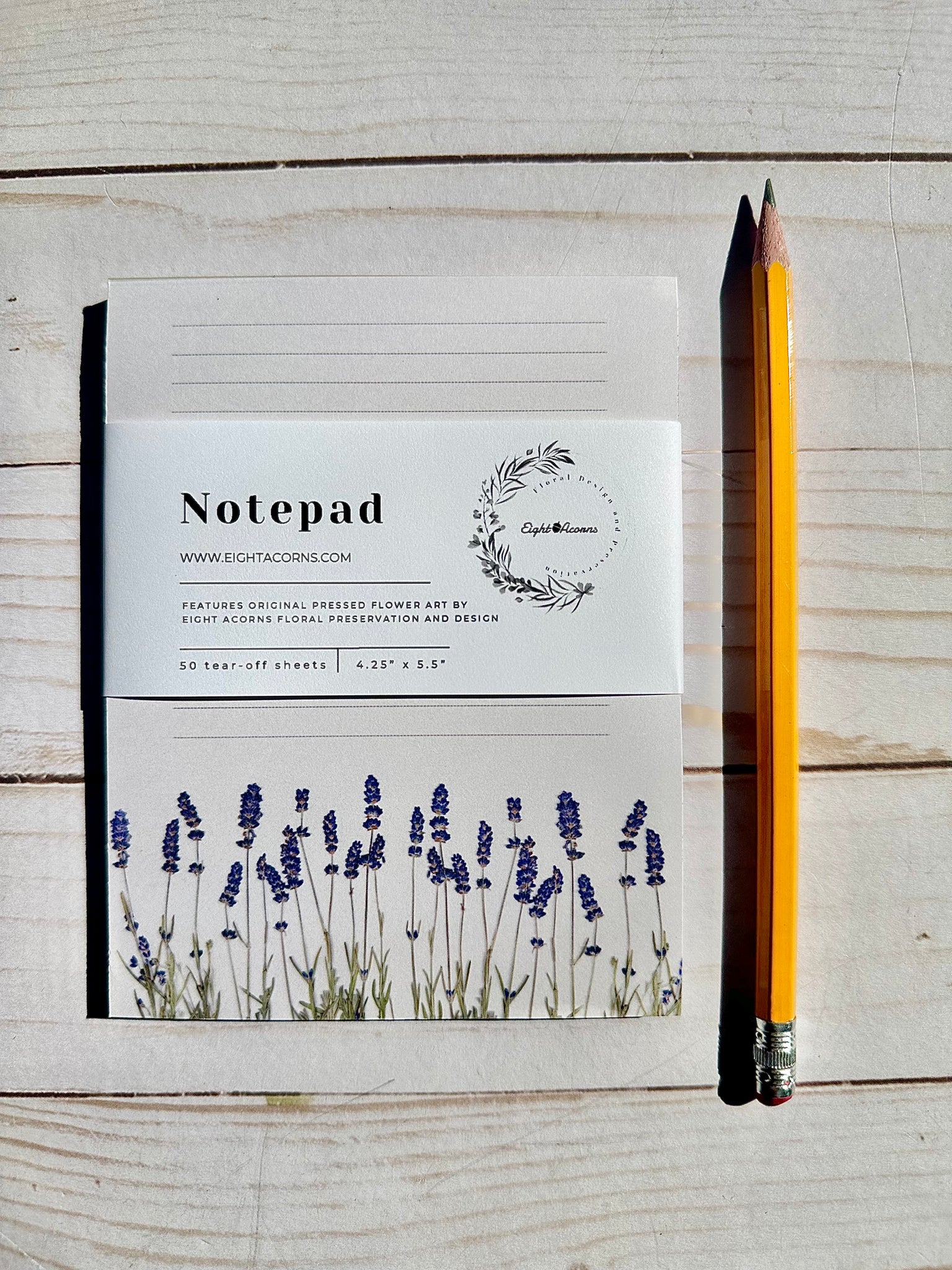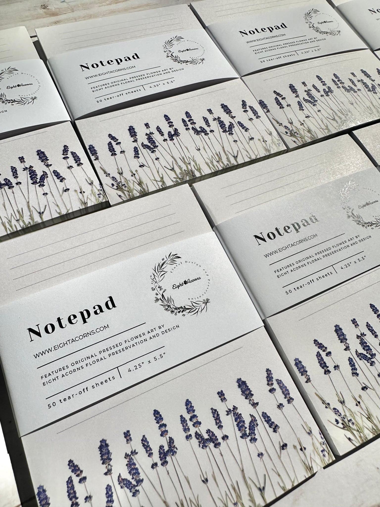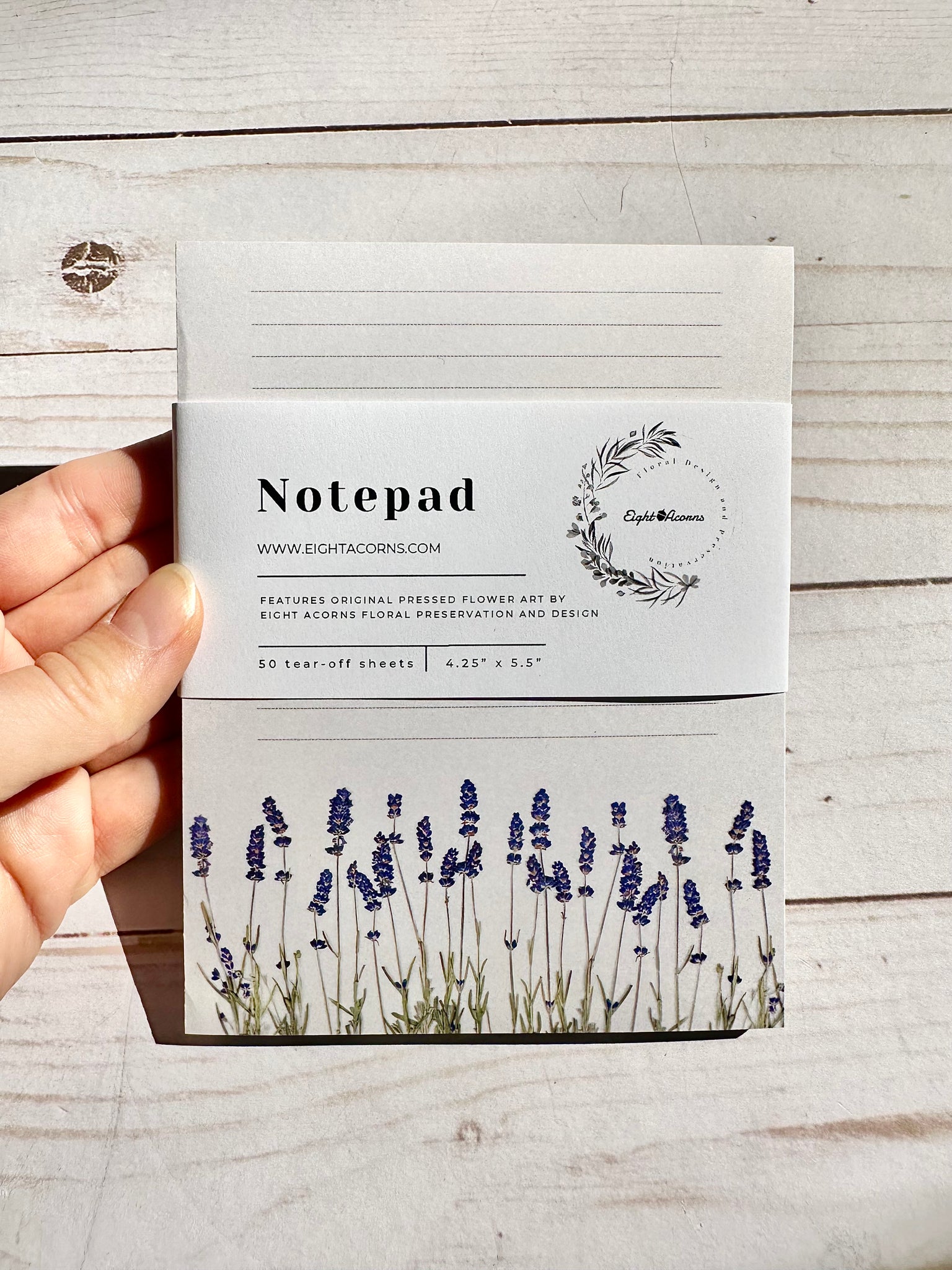 • Each notepad showcases a high-resolution photograph of pressed flowers, printed on heavyweight cardstock with a sturdy backboard.